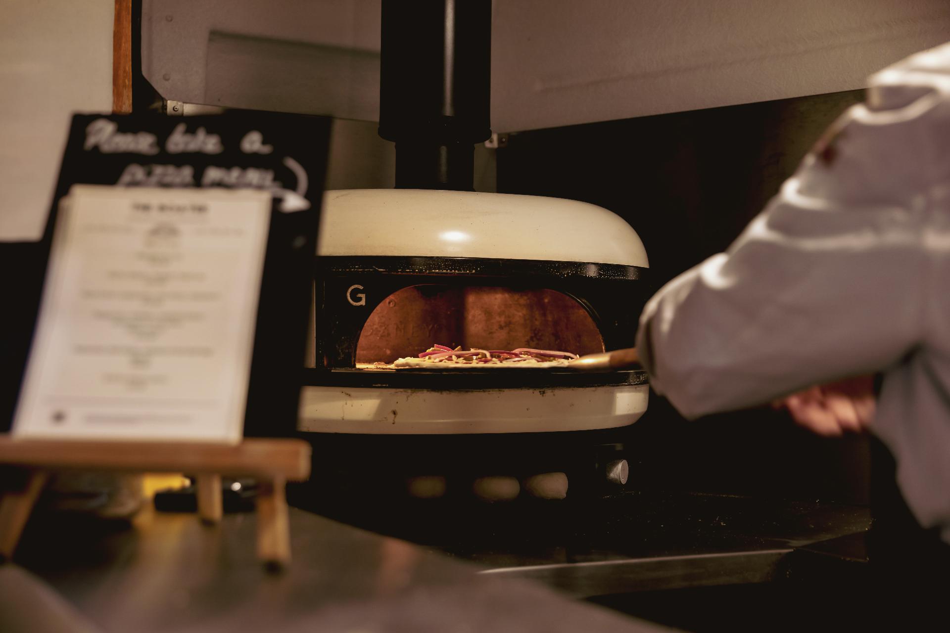 Our pizza van serves a pizza menu during the summer months.